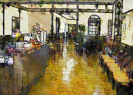 当診療所外来は、癒しのある居心地の良い空間をテーマに、昭和初期の学校の図書館をイメージして作られました。診療所にお見えになったとき、日常の煩雑な時間をちょっと忘れて一息入れていただければと思います。まだ図書は少ししか置いてありませんが、少しずつ揃えていこうと考えております。